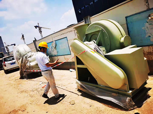 風機在安裝時,需要將玻璃鋼風機的進出風口與通風管道連接在一起。但是風機的進風口與出風口的位置時固定的,所以在設計管道時需要把風機的尺寸考慮進去。但是如果管道的最低高度超過了的風機的高度,那么就需要使用其它的方法來解決。下圖就是玻璃鋼風機高度與需求不符的解決方法,只需要在風機架子的底部使用槽鋼對風機進行加高。